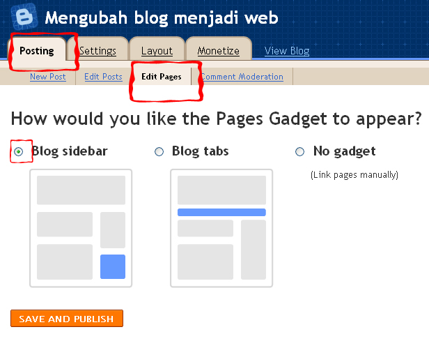 Ada baiknya, gunakan halaman itu untuk menyimpan link mengarah ke postingan sejenis. > Klik Publish Page > Muncul halaman “ How would you like the pages Gadget to Appear?”